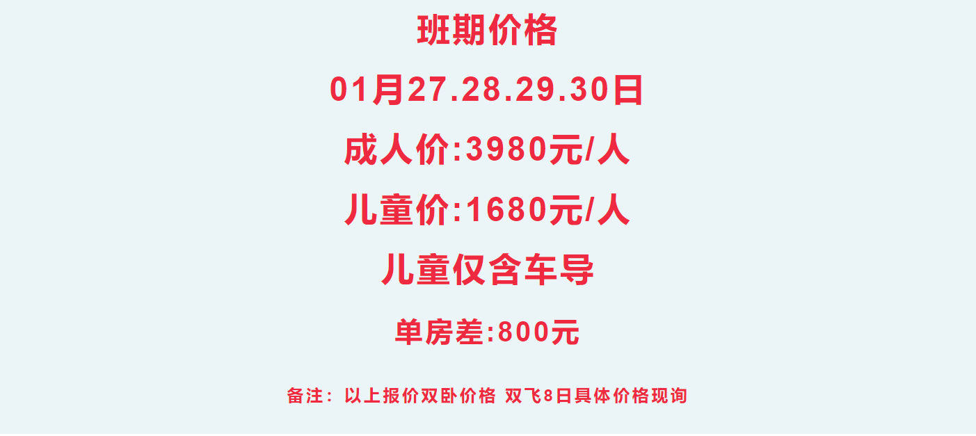 2.单房差:全程入住酒店产生的单房差及加床费用;不占床位游客不含早餐;