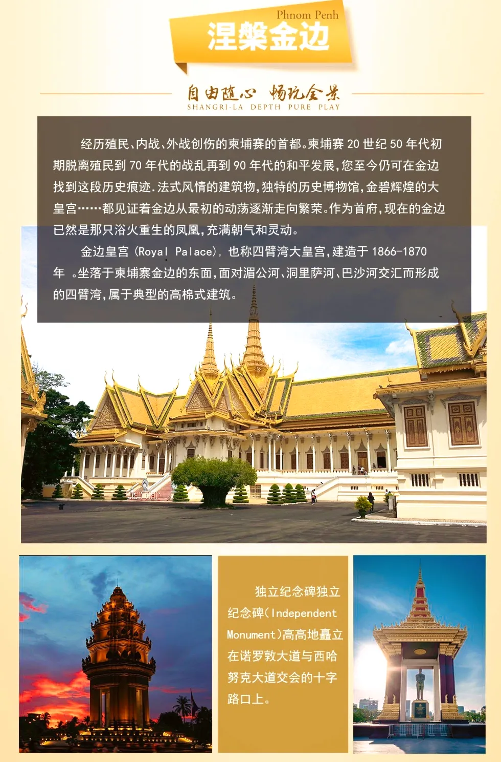 Independence Monument(停留约15分钟) 每年独立节时,柬国王或国王代表都在此举行隆重的庆典。