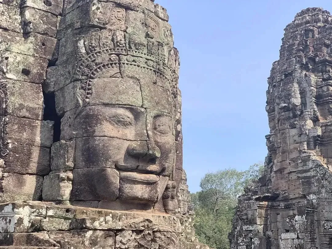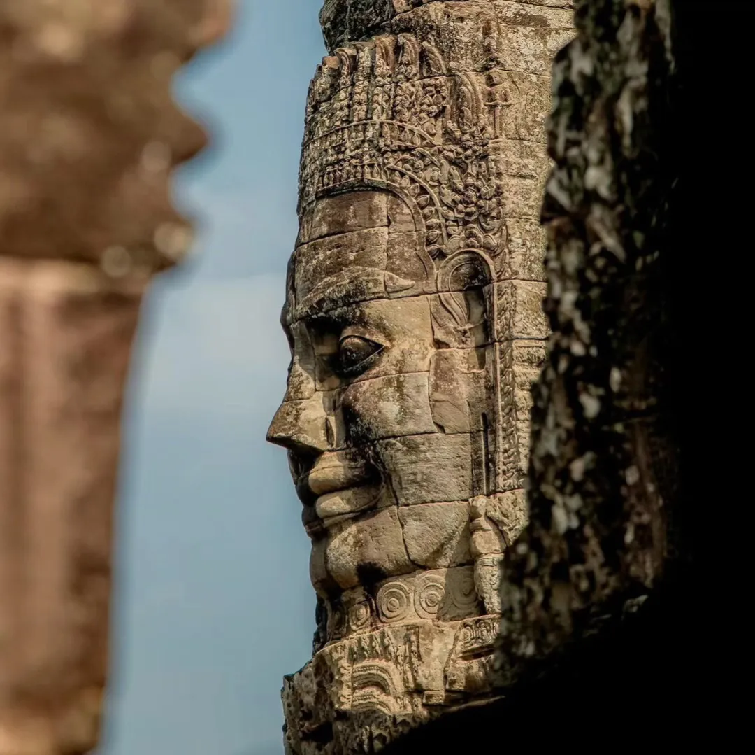 【巴戒神殿】Bayon 是由54座大小宝塔组成一座大宝塔,每座塔的四面都刻有加亚巴尔曼七世的微笑面容,也就是高棉微笑的由来。