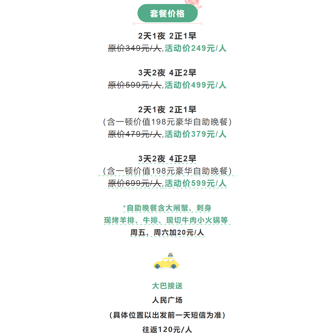 【客房】两人一间基础客房,单住补房差。14:00陆续入住,09:00之前退房(每团可保留一间延至12:00退房)