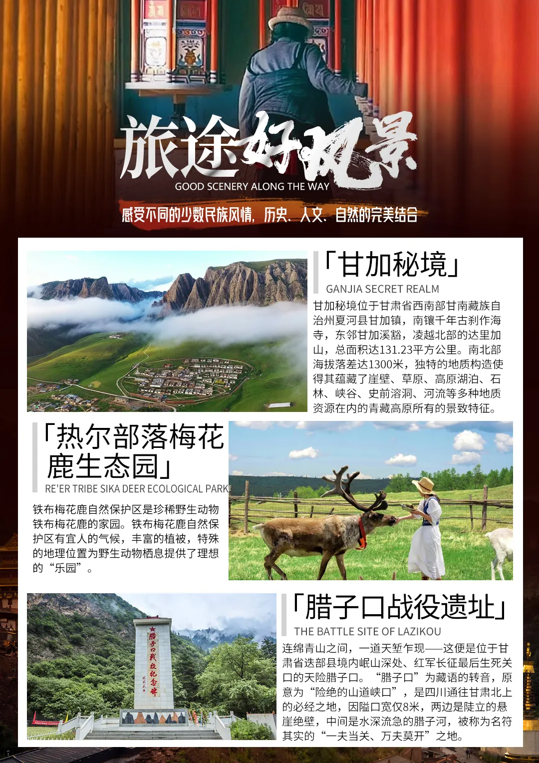 合作/天水 约 450KM 行车约 5.5H 合作/拉卜楞寺 约 65KM 行程约 1H 拉卜楞寺/ 甘 加秘境 约 36KM 行程约 0.5(正常时速情况)