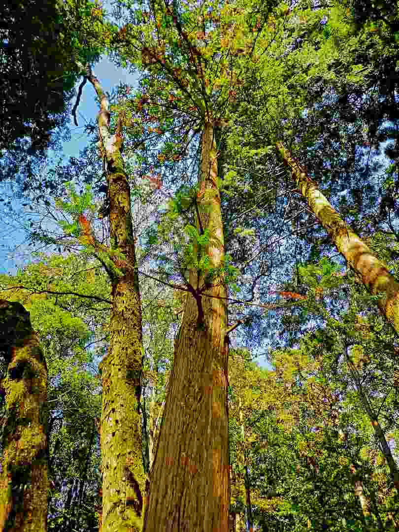 游览千年古树【三宝树】因三株特殊的古树而得名的,这里浓荫蔽日,绿浪连天,3 棵 参天古树凌空耸立,2 棵是柳杉,各高约40 米,1棵为银杏,高约 30米, 主干数人合抱不拢,形同宝塔。