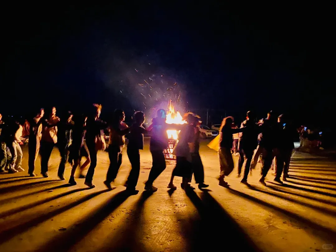 NO.1【草原篝火晚会】团团围坐在草原上,支起架子,点燃火把,这篝火在静谧的黑夜中闪耀着金色的光辉,捂暖了每个人的心间。