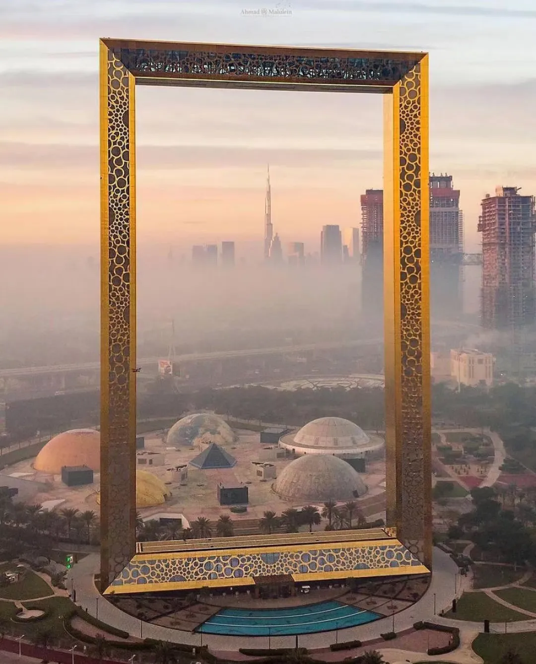 【黄金相框】(车览)“迪拜之框”始建于2013年。令人称奇的是其外表将全部贴金,总造价高达1.6亿迪拉姆(约合3亿人民币)。这个150米高的镀金框架高调地立于扎比尔公园之上,顶端设有93米的观景天桥,观景天桥提供了360度的全景视野,向人们呈现了这座城市的历史风景与现代建筑。