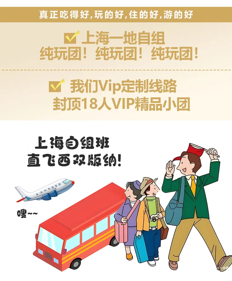 1.【交通】上海版纳往返经济舱机票(一经出票不退不改不签),云南当地旅游巴士,一人一正座。