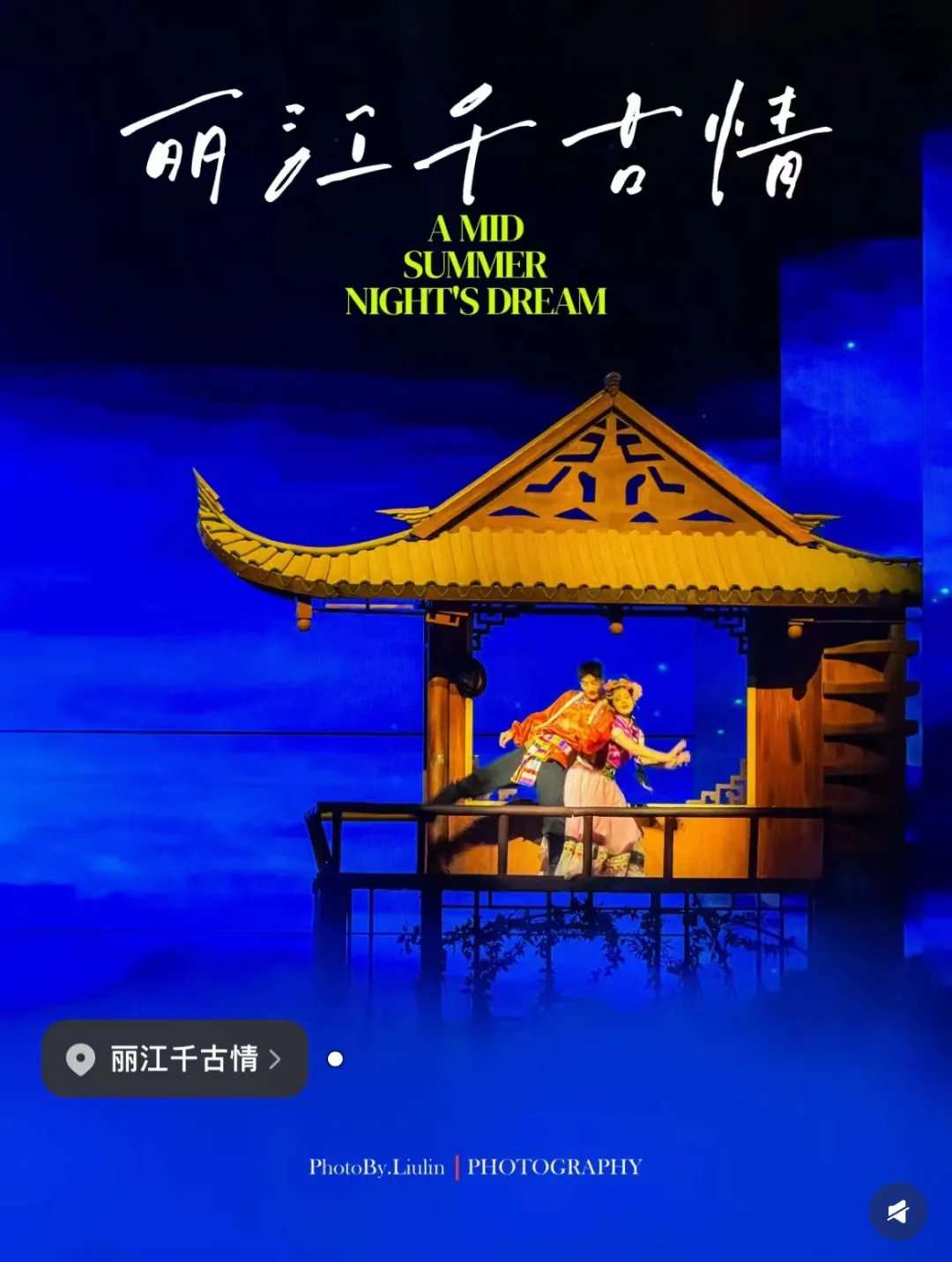 前往观看大型歌舞表演【丽江千古情】,用IMAX3D的大片视觉,重现《纳西创世纪》、《泸沽女儿国》、《马帮传奇》、《木府辉煌》、《玉龙第三国》等丽江长达千年的历史与传说,引领观众穿越雪山, 在旷远原始的洪荒之域、在泸沽湖畔的摩梭花楼、在挟风裹雨的茶马古道、在金碧辉煌的木府、在浪漫凄情的玉龙第三国、在世外桃源般的香巴拉相约一场风花雪月的邂逅,感受一个美丽的时刻,