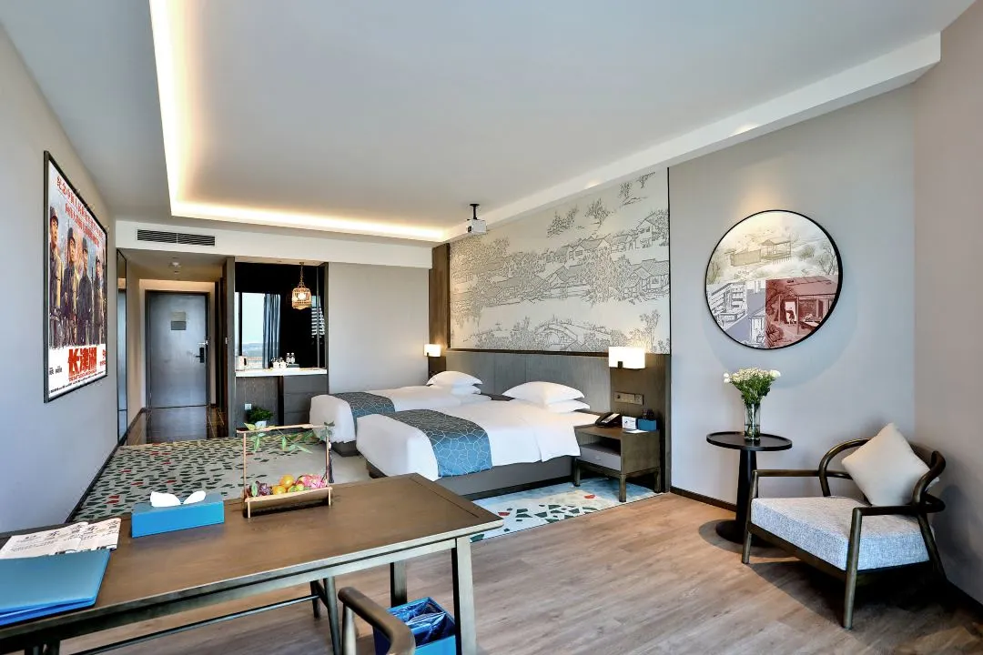 饭店总建筑面积4.5万多平方米,由2幢主楼1座裙房组成,拥有各类型高端客房。分别以纸之仁、竹之节、书之智、锦之礼为主题。