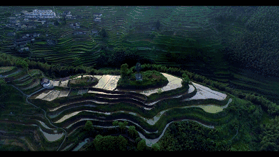 梯田层层叠叠,自海拔1400米的高山上倾泻而下,扑至海拔200米的丘陵缓坡,春有水光,秋有稻浪,冬有雪景,还有四季不散的飘渺云海。