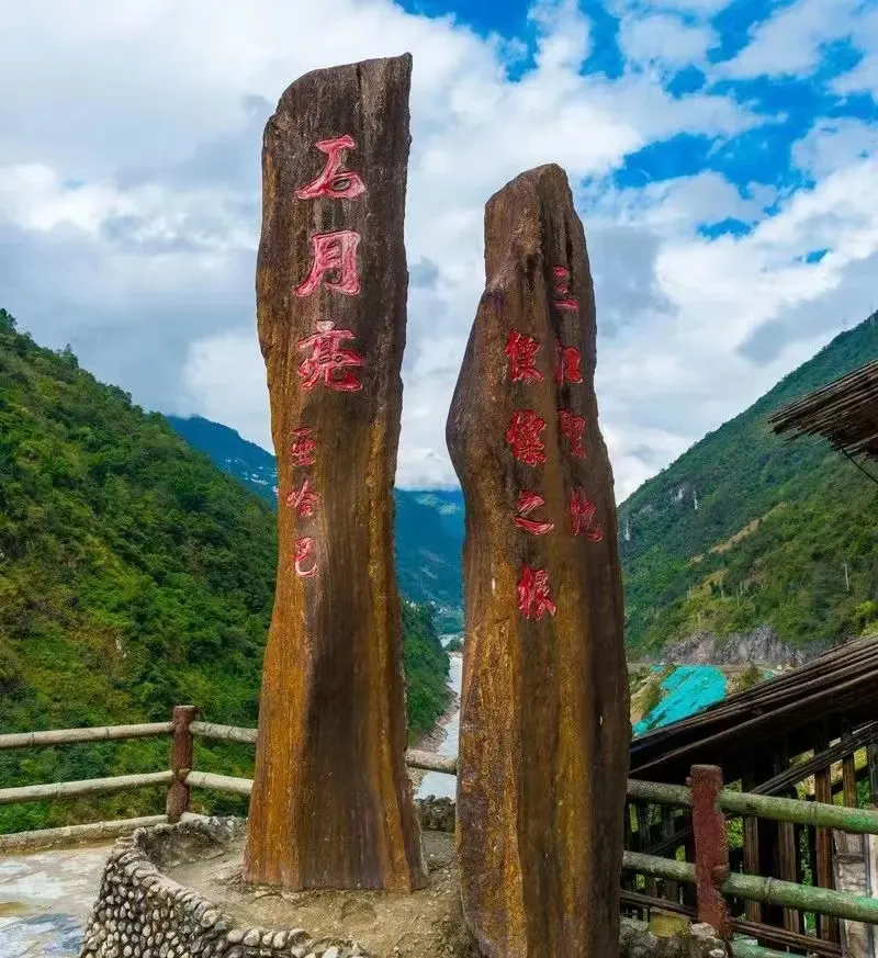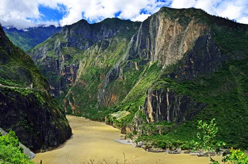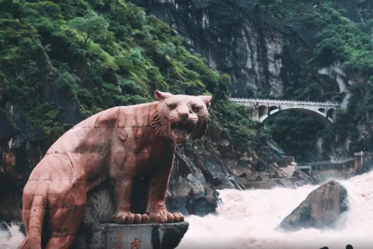 后前往【虎跳峡】是世界上著名的大峡谷,以奇险雄壮著称。从虎跳峡镇过冲江河沿(哈巴雪山)山麓顺江而下,即可进入峡谷。上虎跳距虎跳峡镇9公里,有公路直达,是整个峡 谷中最窄的一段,峡宽仅30余米,江心有一个13米高的大石——虎跳石,相传猛虎曾借此石而跃过大峡。江水与巨石相搏击发出山轰谷鸣的涛声。诗人孙髯翁写 得好:“劈开蕃城斧无痕,流出犁牛向丽奔。一线中分天作堑,两山夹斗石为门。”金沙江至此真似走在石门中。
