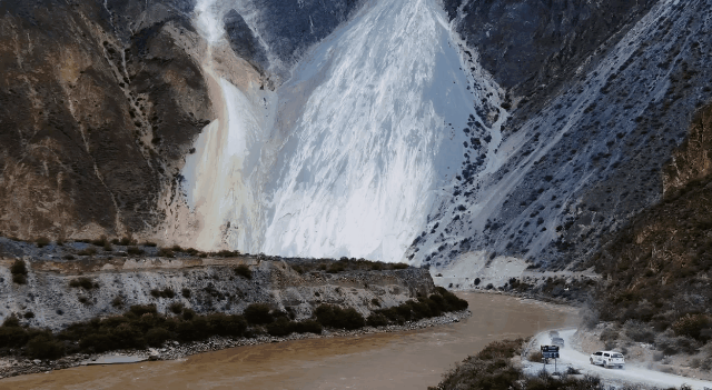 早餐后乘车前往【然乌】游览【千年水墨岩】,水墨岩是在强大的水动力条件下,水流对岩石的构造裂隙或岩石的较软部位,经过长时期的磨蚀作用形成了许多地质奇观。(水墨岩在无名河谷,徒步一段下坡小路才能抵达,如遇雨天路滑或路面结冰,请慎行前往)。