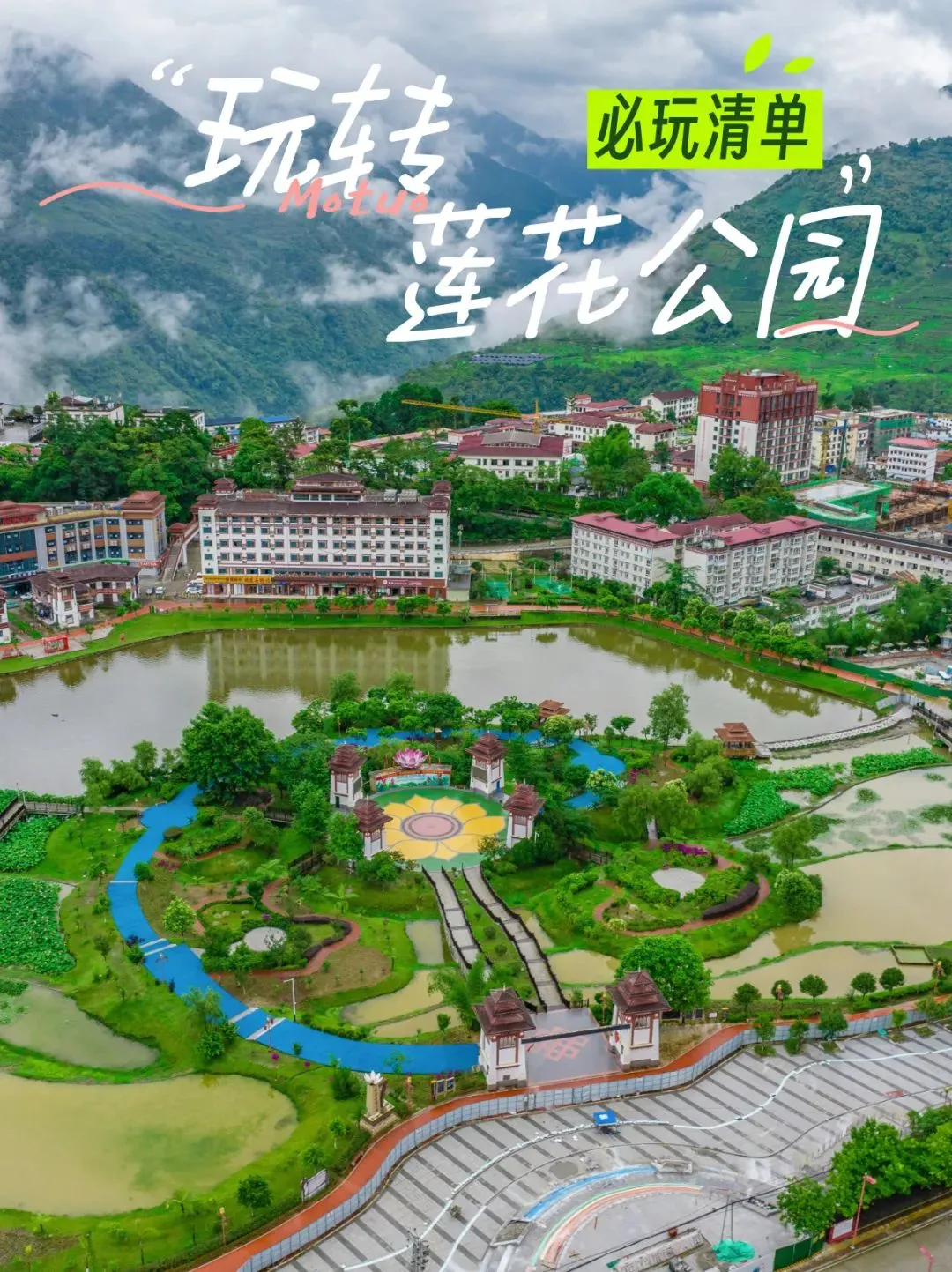 晚餐后可自行闲逛【墨脱莲花圣地公园】,墨脱的城中有一个公园,叫“莲花圣地公园”,几乎来到墨脱的游客都会到这里转转,公园里有像梯田一样的莲花池,旁边是墨脱的商业街道,街道两旁都是门巴族和珞巴族风格的建筑,还有中国门珞文化展示厅,这是墨脱县城比较值得来逛一逛的地方。