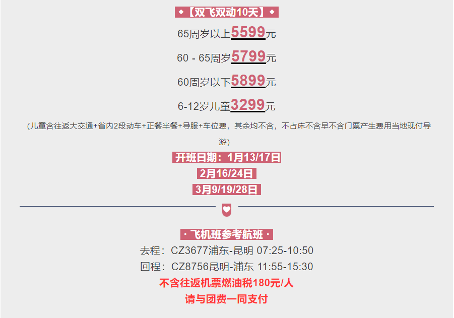不含往返机票燃油税180元/人;请与团费一同支付;