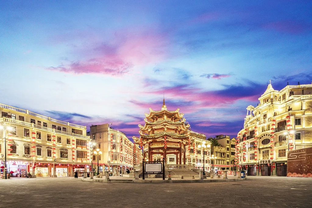 乘车前往“中国碉楼之乡”、“中国摄影之乡”、“世界名厨之乡”【开平】,参观【广东赤坎古镇侨乡国际旅游度假区】(入内参观,安排旅拍,游览约60分钟),已有370年开埠建墟历史的赤坎古镇,拥有600多座骑楼,是全国规模最大、界面最连续、保存最完整的侨乡骑楼建筑群。赤坎古镇的建筑风格和民风生活融汇中西,现已打造集观光游览、休闲度假、商务会展、文化创意和古镇体验功能为一体的综合休闲旅游度假区。小镇四周江水环绕,古榕婆娑,江上舟来楫往。骑楼下,商铺一个挨着一个,林林总总,各式各样。在这里,您会感受到营商与生活融为一体的悠闲写意,会看到一个充满着市井气息活的烟入夜,可在河畔随意找一家食肆,边品尝地道小吃,边欣赏黄灯下的小镇,细细品味小镇在流金火人间。