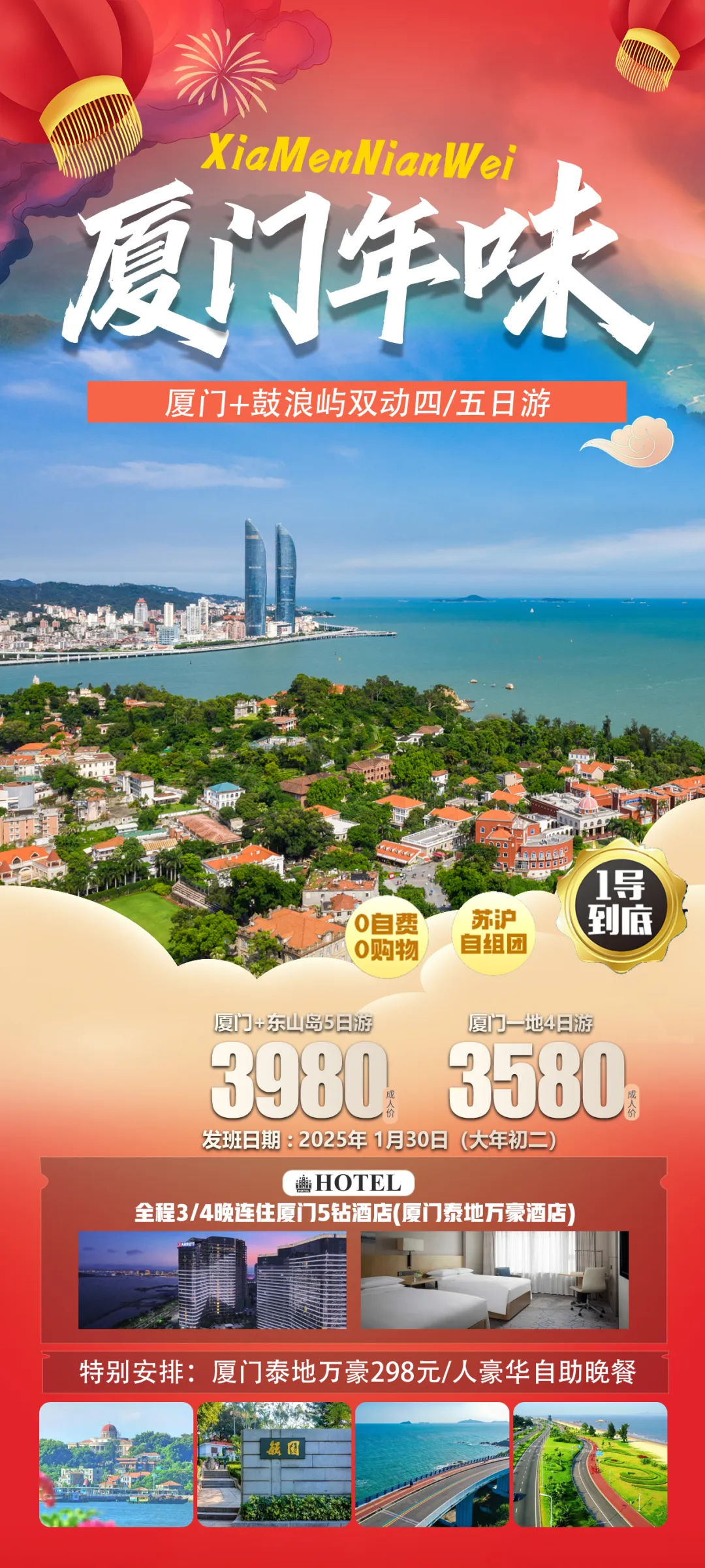 5用车:当地空调旅游车(厦门市区套车 保证1人1正座)