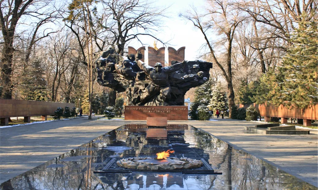 【潘菲洛夫28勇士纪念碑公园】潘菲洛夫28勇士纪念公园内林木茂盛,南面路口立有潘菲洛夫半身像,公园的林荫道旁,苍松翠柏中有28座潘菲洛夫师英雄名字的石碑,在路的尽头,是一座巨大的英雄群雕塑像,气势磅礴,底座上刻着俄文:伟大的俄罗斯,我们已经无法退缩,身后就是莫斯科。雕像旁边是不灭圣火,用以市民祭拜。现今是当地人接受爱国主义教育、缅怀先烈、假日休闲的主要场所之一。
