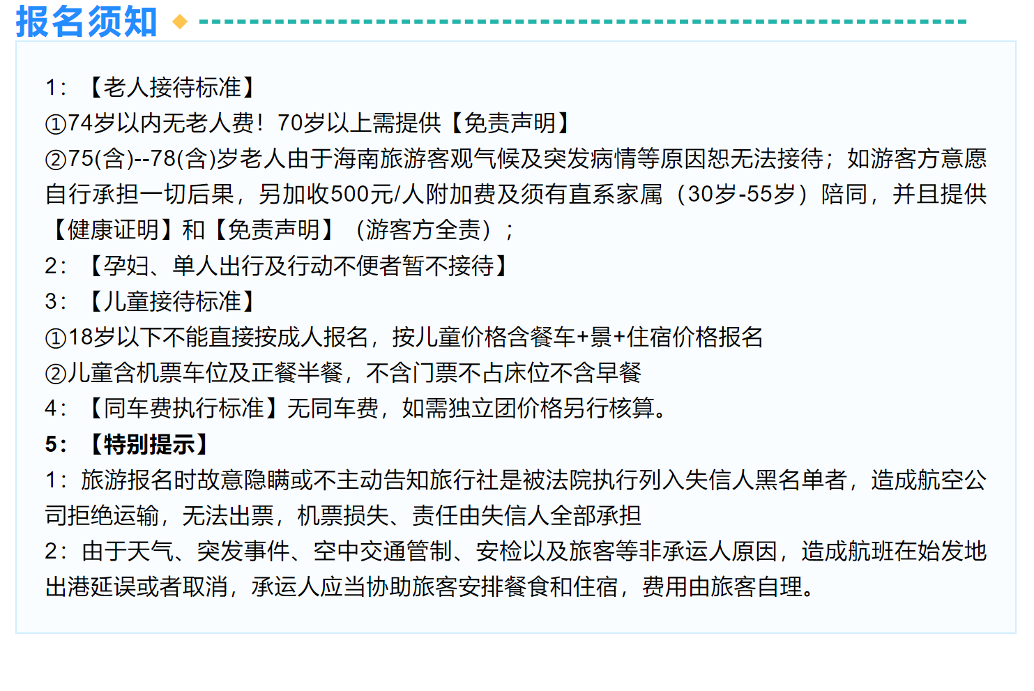 2、由于海南海岛特点,为保障游客旅游体验,行程游览会视天气、车程、游客密集情况对景区游览顺序进行调整,但绝不压缩各景区游览时间。
