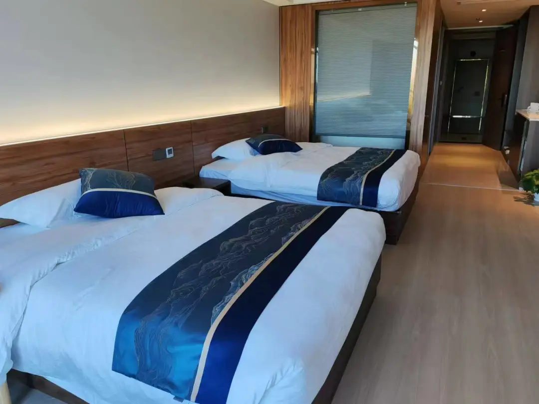 酒店设有高标准配置的景观房共150间,24年升级打造30间五星标准豪华客房,拥有巨大落地窗,透过窗户可看到不远处的湖岸。房间内用具齐全,定时清洁,宽阔明亮,让您享受优质入住体验。