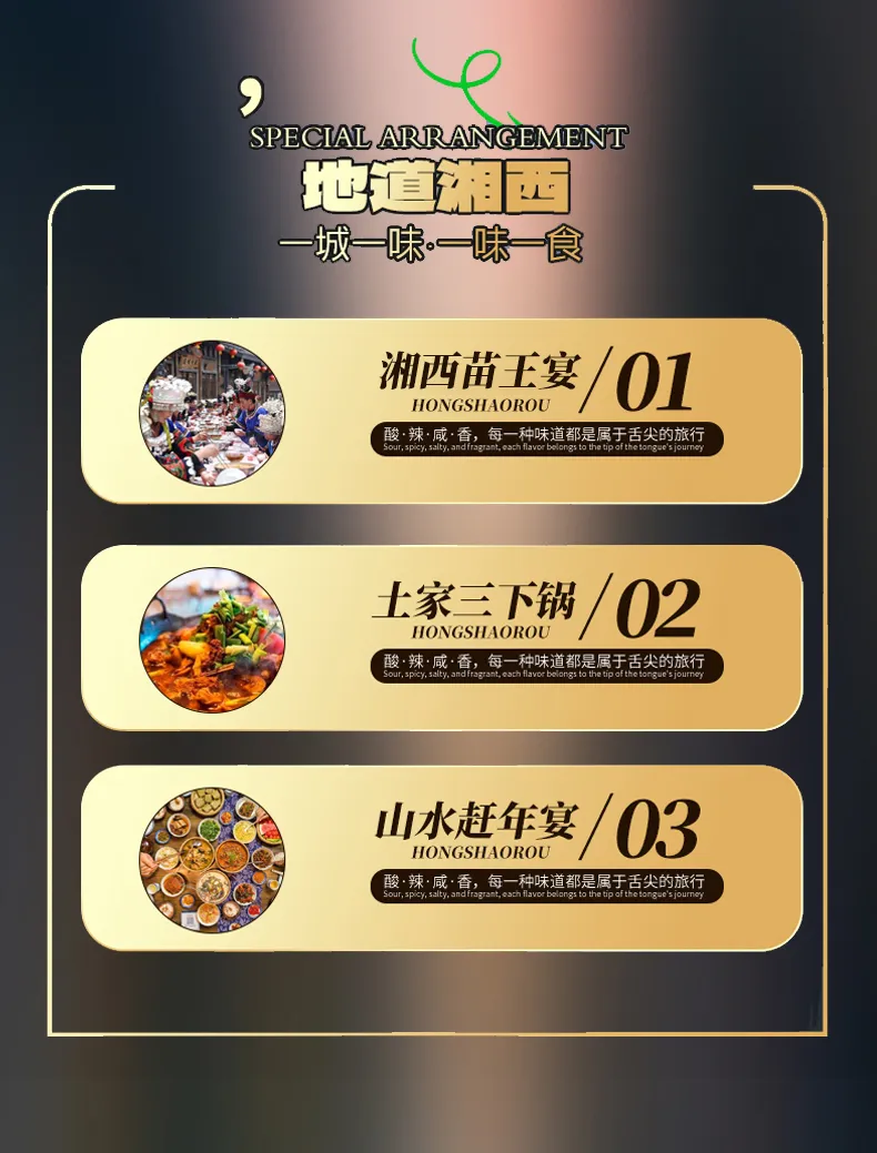 晚餐后观看【湘西大型歌舞晚会】(魅力湘西或千古情)千年神秘一台戏,揭开湘西神秘的面纱,湘西奇人,湘西狂人,上刀山,下火海零距离与您接触,让您在惊奇、兴奋中了解湘西,湘西不再神秘!让我们一起穿越时间,探寻湘西故事。晚会后,入住酒店。(此为赠送晚会,如遇堵车及特殊原因停演不能正常观看,无退费请谅解)
