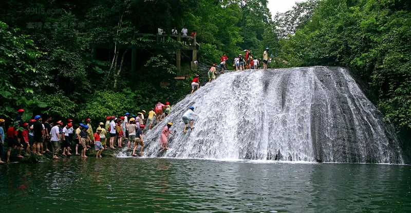 前往游览AAAA景区【古东瀑布】(游览时间约2小时),此处是中国唯一一个由地下涌泉形成的多级串连瀑布,也是可以触摸攀爬的可亲近瀑布,绿意环绕。大家可以换上草鞋,戴上头盔,一起在这天然氧吧与自然万物同呼吸,与瀑布嬉戏,体验真正的走瀑戏浪,释放身心,感受大自然的独特魅力。