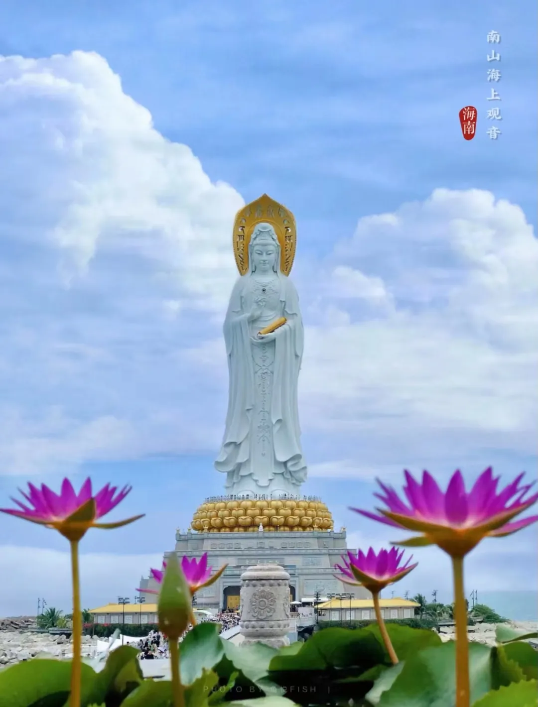面朝南海,碧波千叠,晴光万重,浪激石音,水照天色,山上终年祥云缭绕,气象万千。