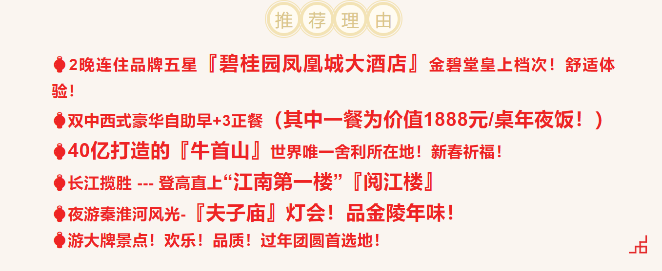 指定集合前往南京『五星碧桂园酒店』办理住宿,晚上享受年夜饭,大家一起跨年庆祝新的一年的来临!