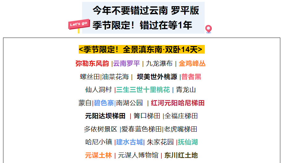 根据当季时间早起至【金鸡峰丛】拍摄万亩油菜花海日出,站在山顶放眼望去,一个个形态各异,玲珑精美的锥状山头,无边无际的绿色和黄色的油菜花尽收眼底;漫步穿行在这大自然醉美如画的【油菜花海】田园之中,感受春天的气息。温馨提示:不金鸡峰丛景区含自愿乘坐的代步观光车20元。