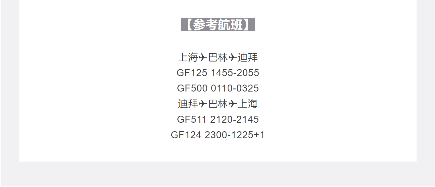 提前3小时在上海浦东国际机场集合,公司专业领队协助您办理登机手续,乘机经巴林转机前往迪拜。