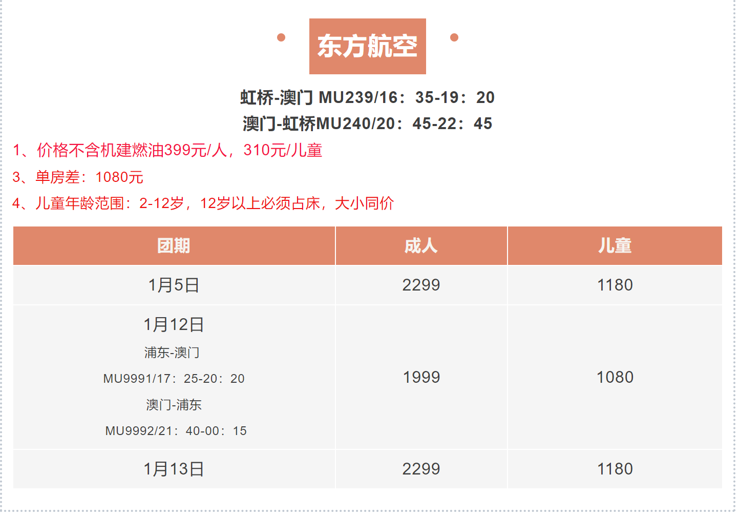 【交通】上海-澳门往返经济舱(不含税费+国际燃油费,以出票当天为准)。