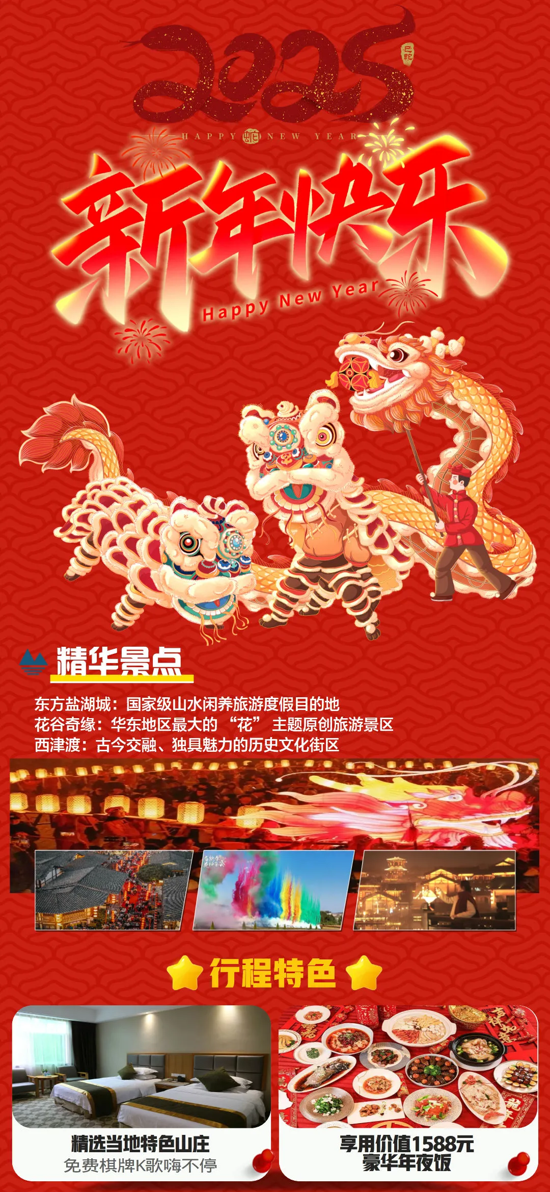 晚上在酒店享用价值1588元的豪华年夜饭, 晚宴后可畅玩打牌或K歌,或者在山庄内自由活动