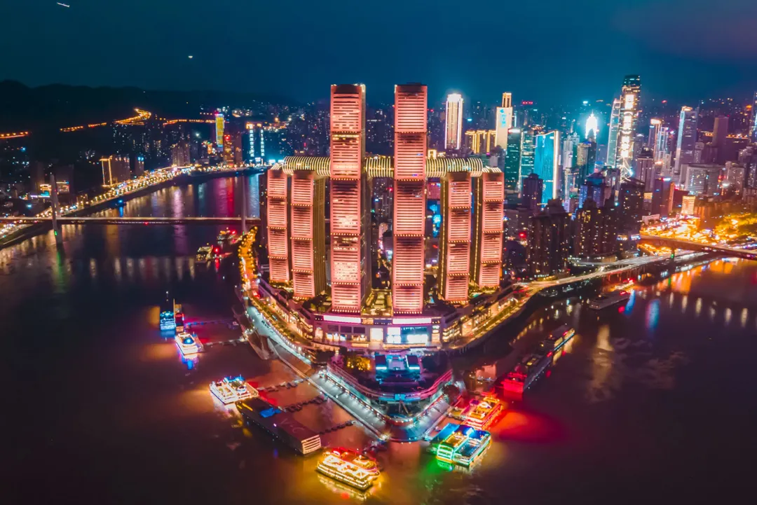 约16:00 游览【洪崖洞】— 位于核心商圈解放碑沧白路,长江、嘉陵江两江交汇的滨江地带,坐拥城市旅游景观、商务休闲景观和城市人文景观于一体。 以具巴渝传统建筑特色的"吊脚楼”风貌为主体,依山就势,沿江而建,这⽚夜间光辉炫⽬,层叠错落的灯影群楼,被称作是“现实版的千与千寻”,也是⼭城夜景的代名词。