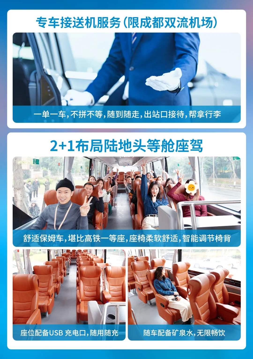 3.送站为专职司机(无导游服务),师傅提前一天21:00前联系客人,如未联系请拨打联系报名时工作人员,, 机场无送机人,请客人凭身份证到相应柜台自行办理登机手续!