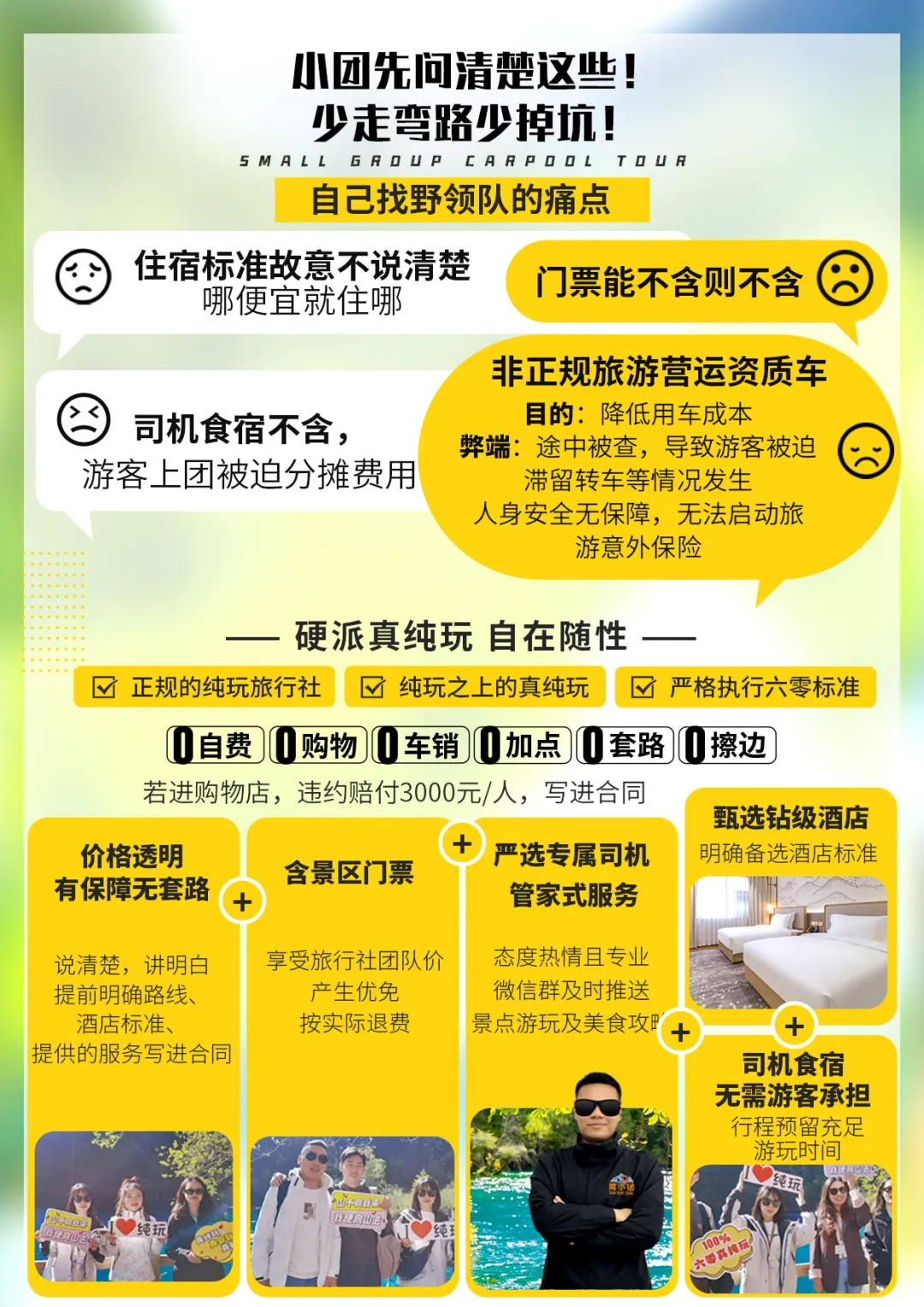 10.本行程为当地散客拼团线路,在保证承诺的服务内容和标准不变的前提下,会与其他旅行社的客人拼成一个团,统一安排行程。