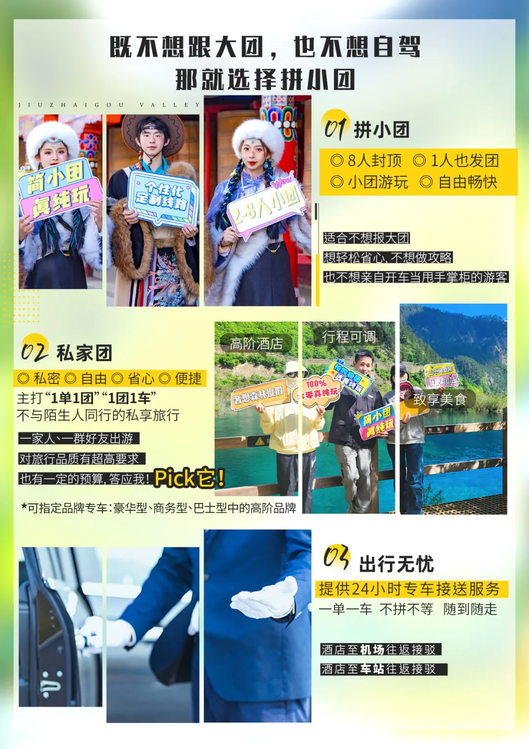包含(四姑娘山双桥沟、都江堰or熊猫谷2选1、九寨沟、黄龙)门票各一张;(取票方式:刷身份证入园;若您是特殊证件,则司机师傅协助办理)