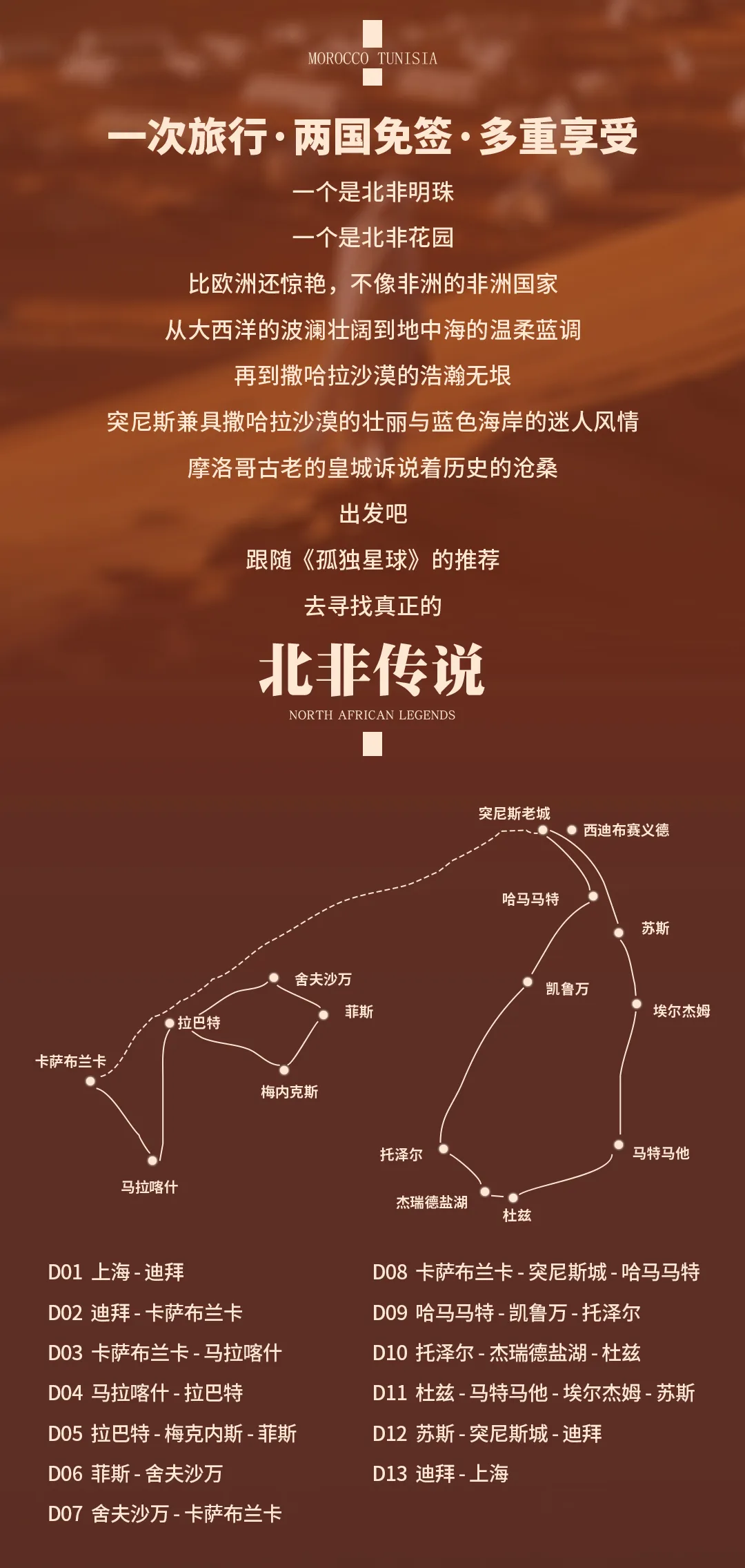 7、当地风俗:摩洛哥突尼斯是伊斯兰教国家,禁食猪肉,参观清真寺或博物馆时,需脱去鞋子入内参观。