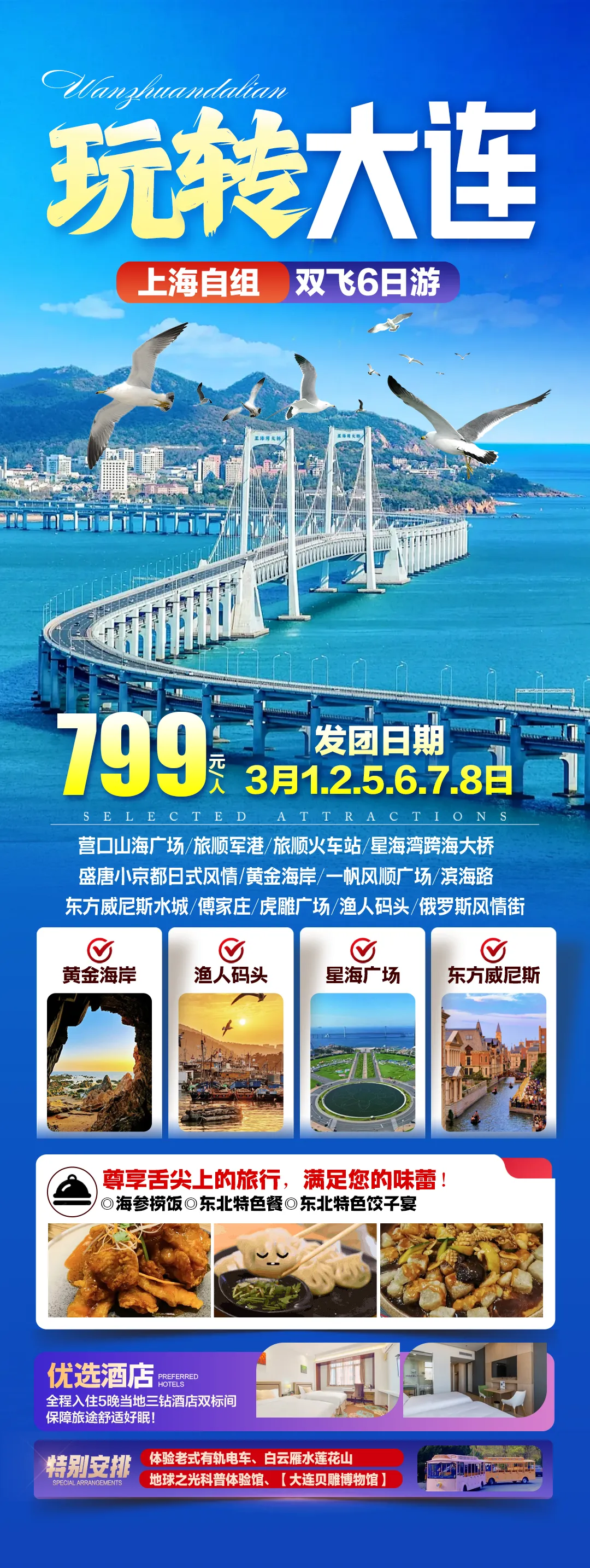 ✔营口山海广场✔旅顺军港✔旅顺火车站✔星海湾跨海大桥✔盛唐小京都日式风情街✔黄金海岸✔一帆风顺广场✔滨海路✔东方威尼斯水城✔傅家庄✔虎雕广场✔渔人码头✔俄罗斯风情街