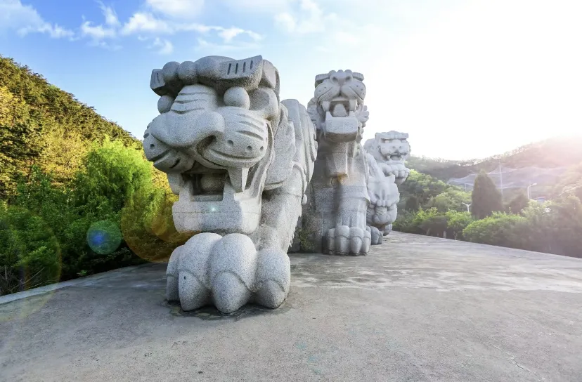 【老虎滩虎雕广场】虎雕广场的六只老虎石雕是全国最大的花岗石雕。他们错落有序地交叠在一起,形态各异,虎头都向着东方,迎风长啸,个个虎虎生威。