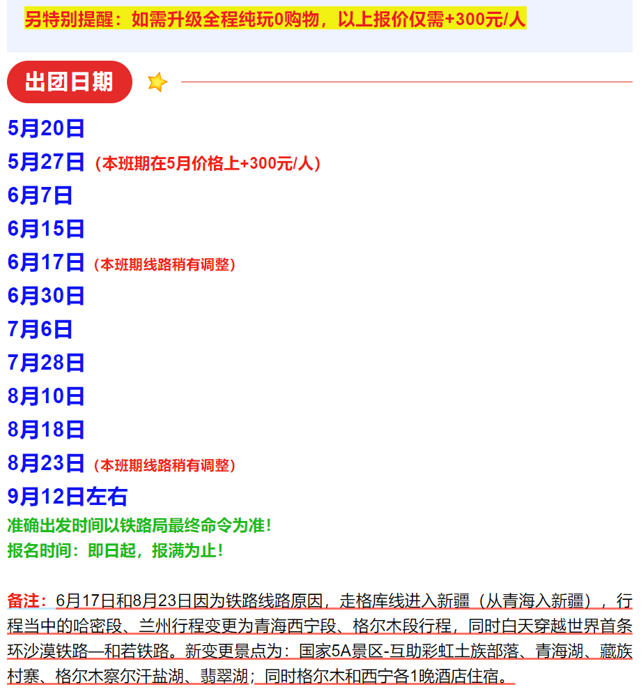◆10年以上大型专列团队操作经验—品质有保障、服务更用心,出游更安心 !