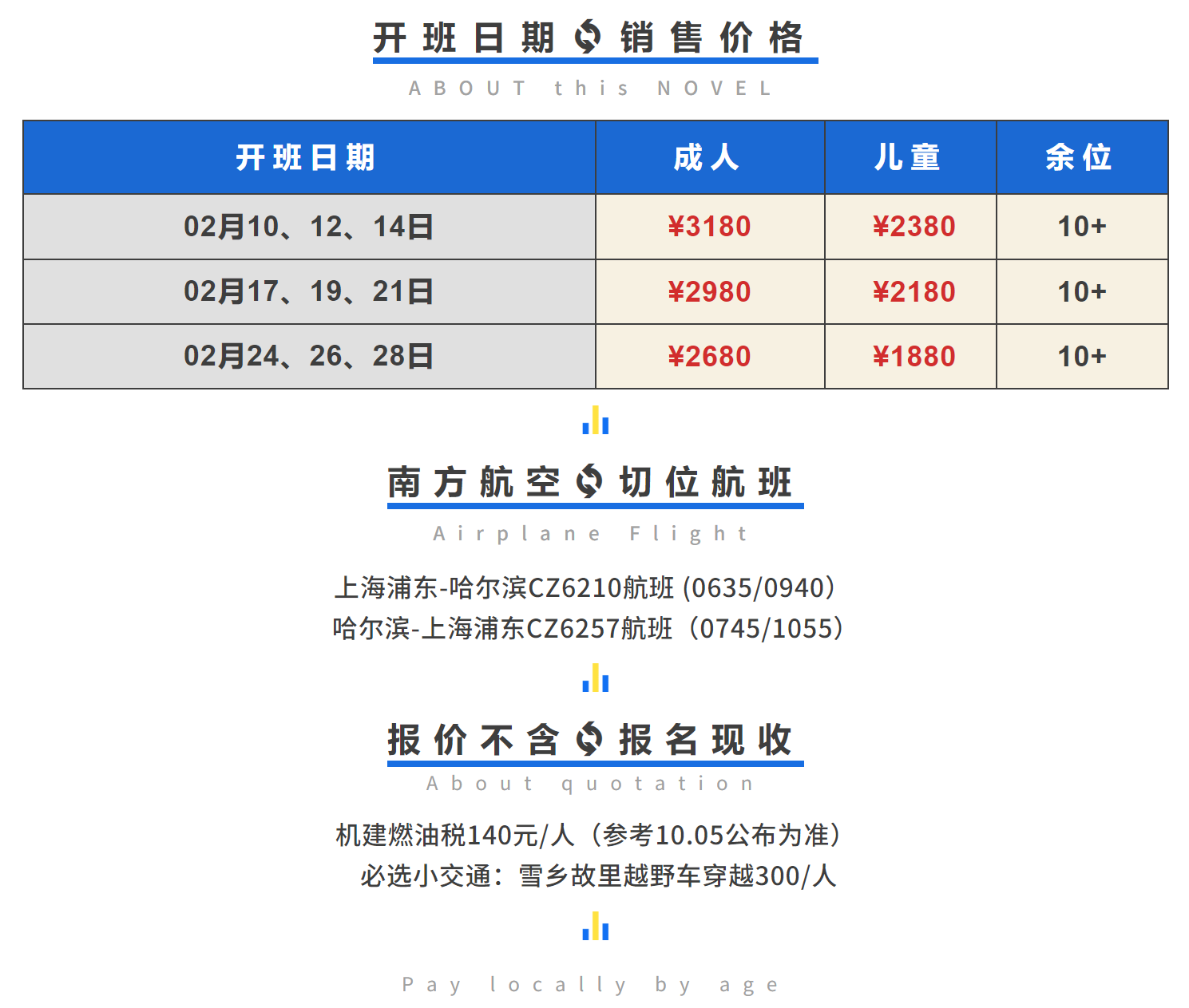【交 通】上海-哈尔滨往返机票含20KG托运行李;请务必提供准确客人名字+身份证号码。