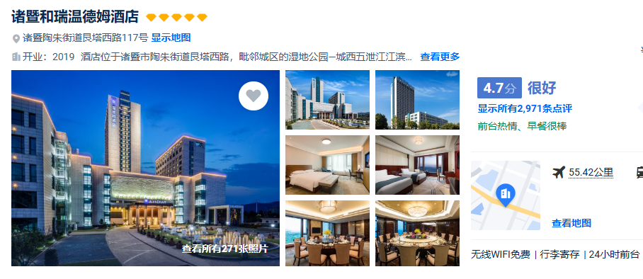 【住宿升级】2晚五钻『诸暨和瑞温德姆店』