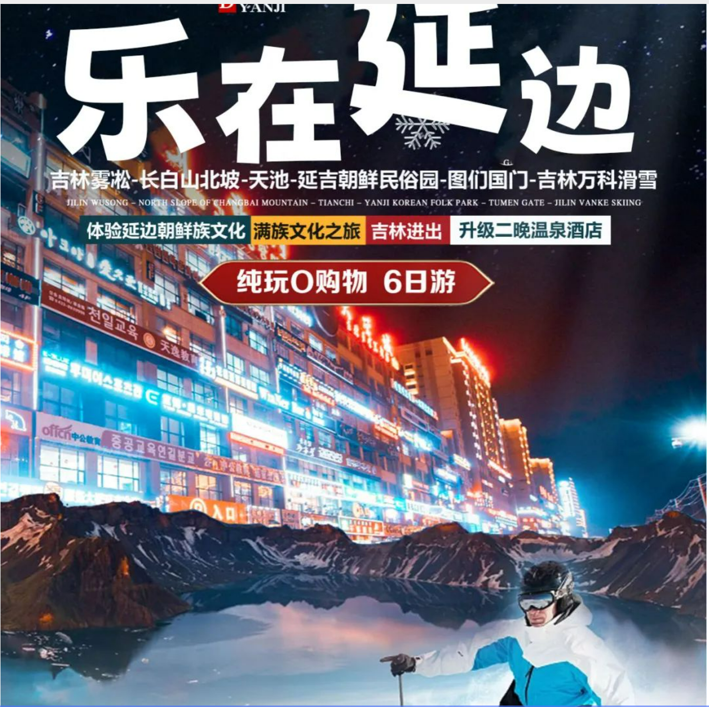 赠送景点:雾凇漂流、万科初级滑雪2小时+观光缆车、日光山、水上市场、延边大学弹幕墙