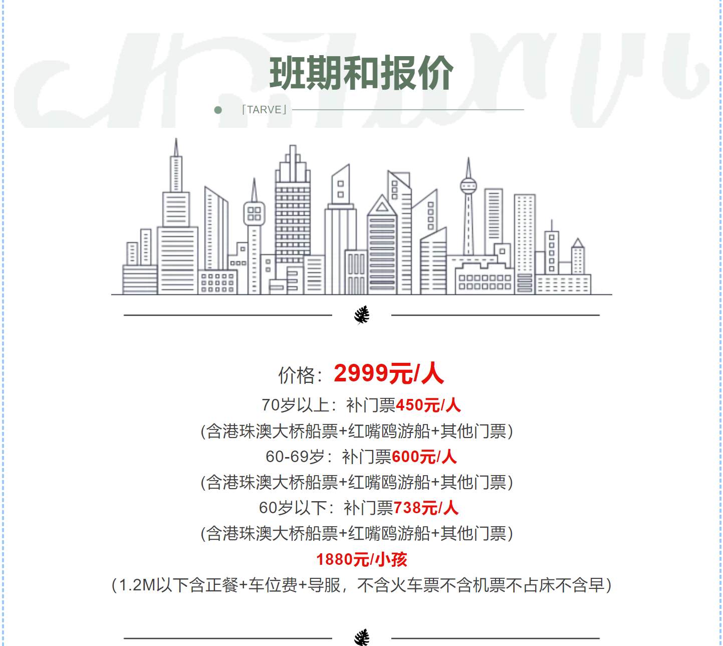 60-69岁:补门票600元/人(含港珠澳大桥船票+红嘴鸥游船)