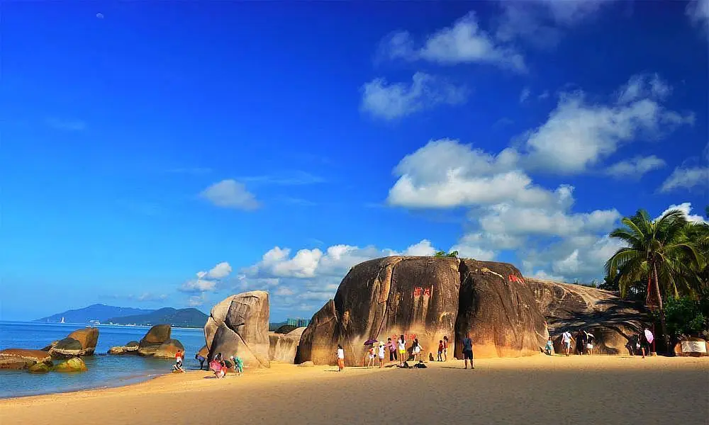 “巽寮湾位于惠东县城平山镇南部,地处北回归线以南,南海大亚湾的东部,海水清澈碧绿,周围布满了千姿百态的奇礁异石,有“蓝色翡翠”和“天赐白金堤”的美誉。”
