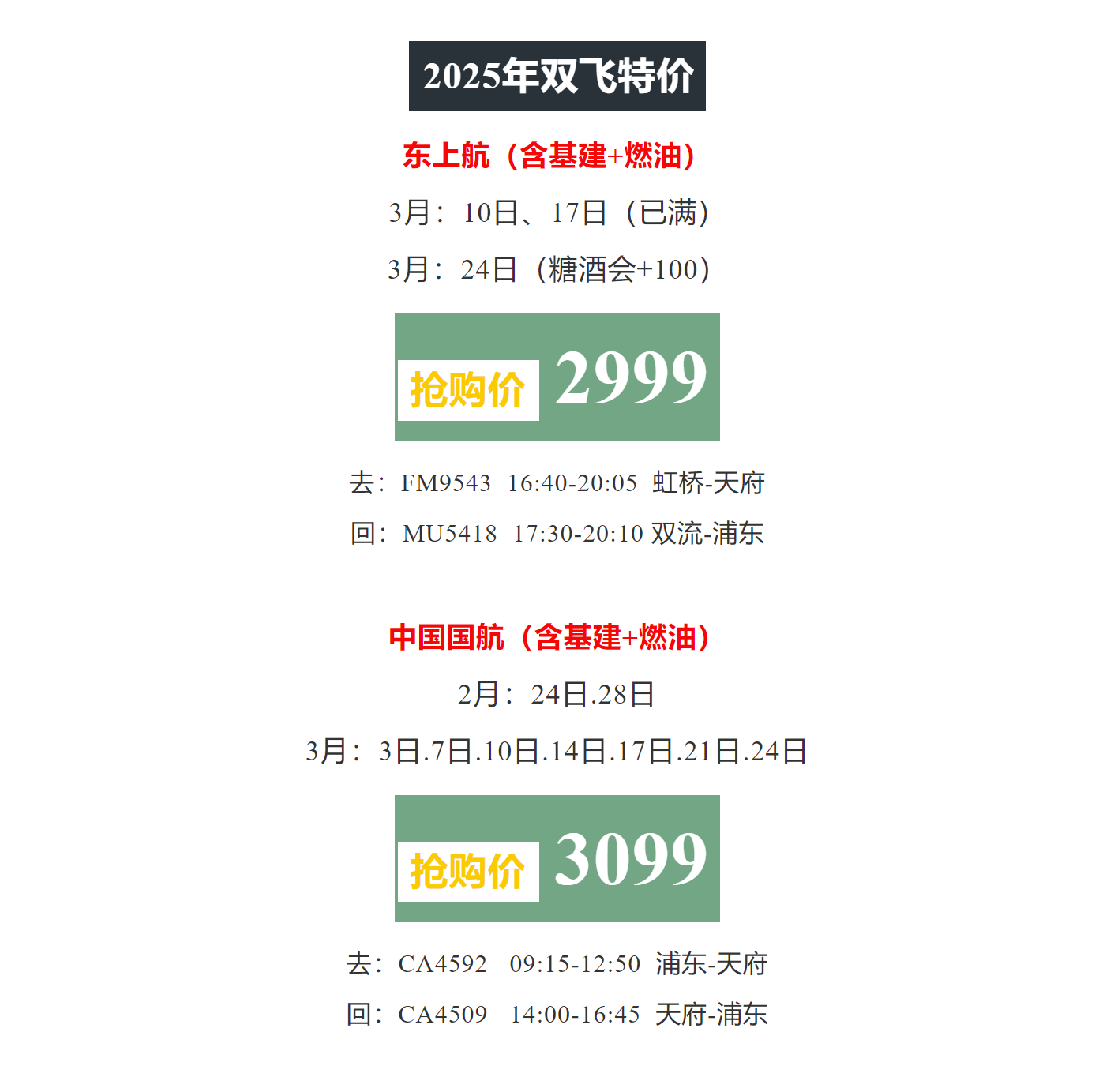 备注:特价机票一经预订不改不签,退票只退税,且特价团队机票如去程不使用回程则无法使用;