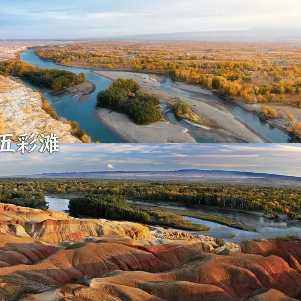 早餐后,前往【禾木景区】(车程约40公里1小时,区间车车程约30公里1小时,游览时间不少于3小时)禾木村中所有的房屋都是朴素的小木屋,散乱的分布在山间的谷地里,当地少数民族同胞在院子里劳作着,显得古朴安静。禾木河在村旁流过,河水是浅蓝色,非常的清澈。村子周围还有草原、白桦林等,风光优美。禾木村是新疆美丽壮观的阿尔泰山中一个原始古朴的山村,它素有“摄影家的天堂”之美称,小桥流水,炊烟袅袅。古朴的山村景致,像喀纳斯湖一样充满神秘色彩。可登上哈登观景台,俯瞰禾木古村落全景。后乘车返回北屯,途经布尔津,推荐性自费项目:参观游览被称为童话世界的【五彩滩景区】自费 (游览时间不少于40分钟)五彩滩位于额尔齐斯河沿岸。一河隔两岸,南岸是郁郁葱葱、枝繁叶茂的密叶杨原始森林;北岸是色彩斑斓的火山熔岩,悬崖式的雅丹地貌,山势起伏、颜色多变。晚餐后乘专列赴精河南/伊宁;
