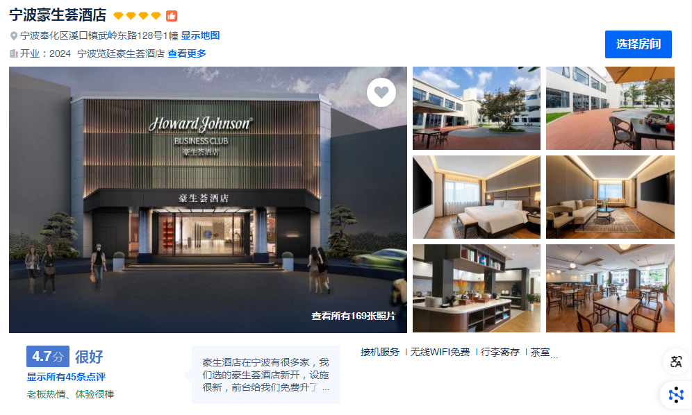 ★宁波溪口豪生酒店3晚连住,自助早餐!