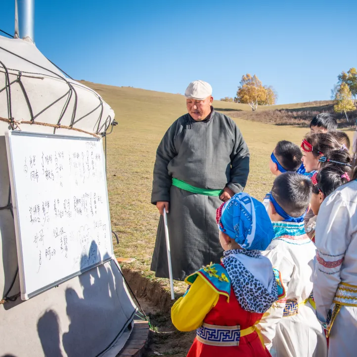 跟琪琪格学着说一句蒙古语,学一学“爸爸妈妈”用蒙语怎么说。一边倾听他们在草原上的游牧故事,一边交流已经逐渐消失的民族文化。我们从未如此近距离接触和了解一个少数民族。