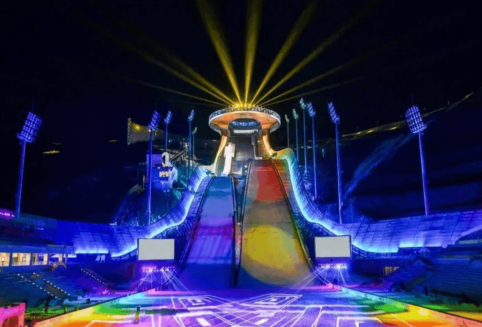 当夜幕降临后,躺在床上就能欣赏雪如意灯光秀。雪如意的造型独特,灯光璀璨夺目,与夜空中的繁星交相辉映,美不胜收。