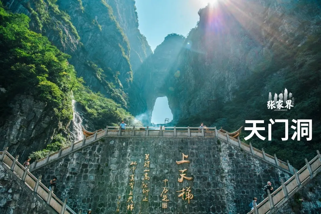 然后游览“武陵之魂”湘西神山【天门山】:乘高山客运索道上山:游览碧野瑶台、觅仙奇境、天门洞开景区,体验“云在脚下,奇峰尽览,万象目中”的豪迈感觉。观五大奇观,【天门索道】:索道线路斜长7455米,上、下站水平高差1279米,是世界最长的单线循环脱挂抱索器车厢式索道。【玻璃栈道】:这条看着就让人腿软的玻璃栈道给人带来的刺激震撼感。【通天大道】:被称为通天大道的盘山公路共计99弯,“天下第一公路奇观”横空出世,垂直高差达千米左右。【天门洞开】是罕见的高海拔穿山溶洞,上天梯登临天门洞共有999级台阶,象征着至高无上和天长地久,已成为八方来客朝圣天门的登天祈福之路。【鬼谷栈道】:栈道全长1600米,平均海拔为1400米,全线立于万丈悬崖的中间,给人以与悬崖共起伏同屈伸的感觉。