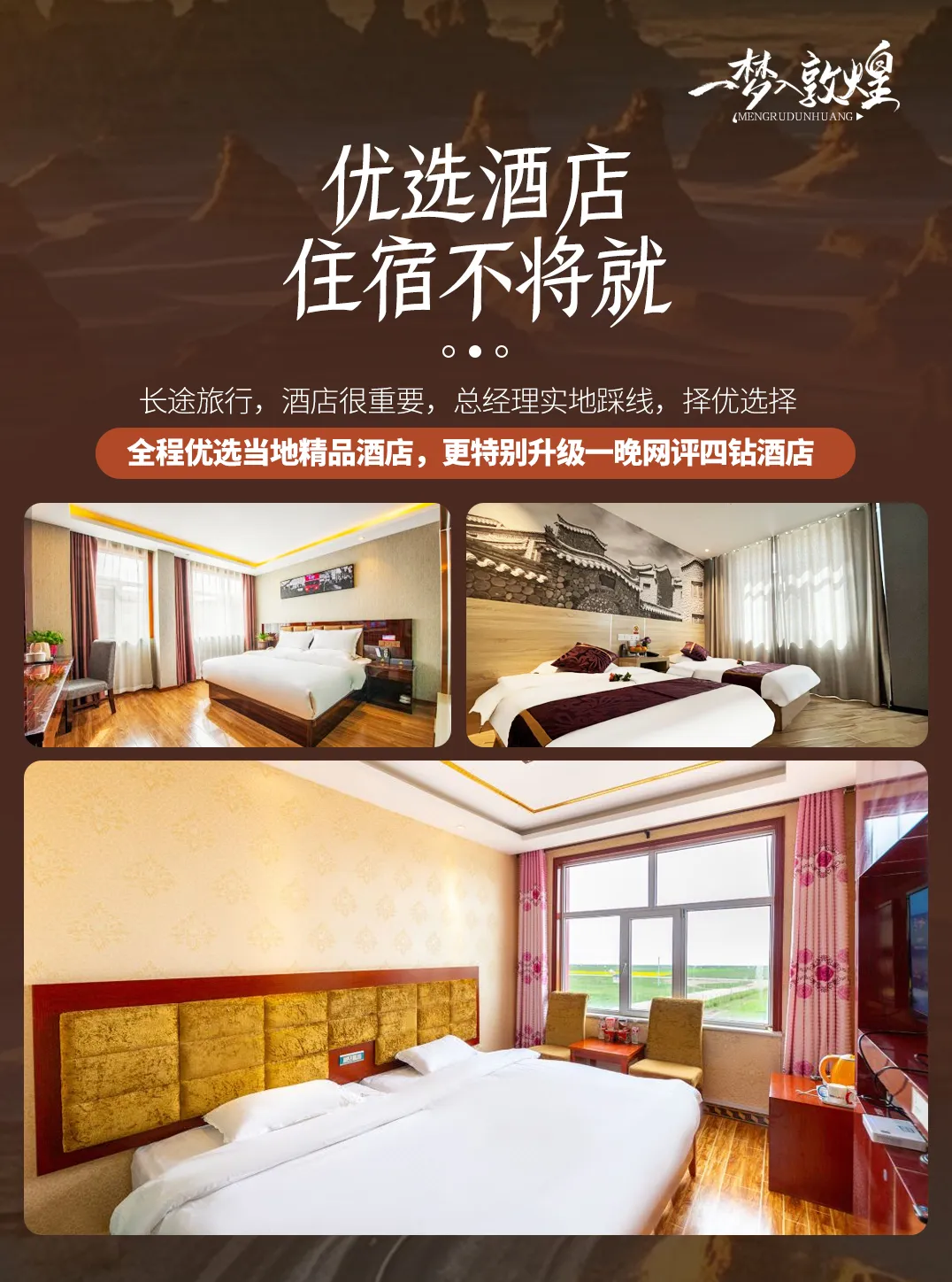 敦煌:祁连大酒店、聚丰国际大酒店、曼陀罗精品酒店或同级