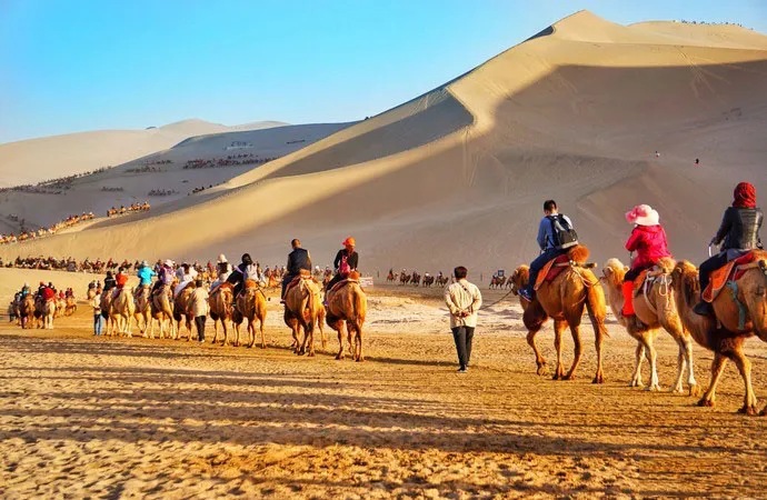 鸣沙山骑骆驼100元-120元 ,在骆驼的背上感受漫漫丝绸之路。08:00之前乘坐骆驼为120元/位